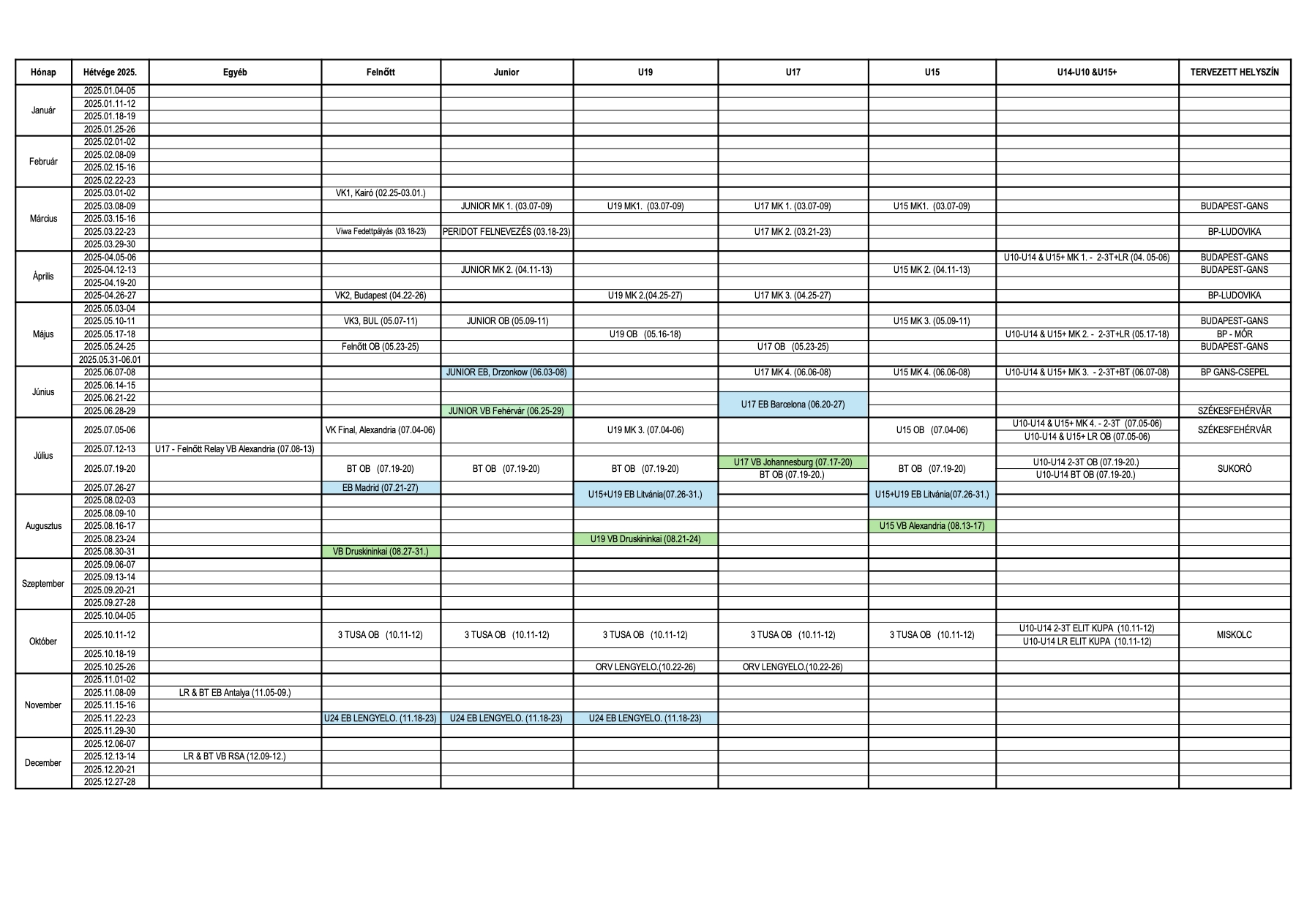 A 2025. évi hazai és nemzetközi versenynaptár:
